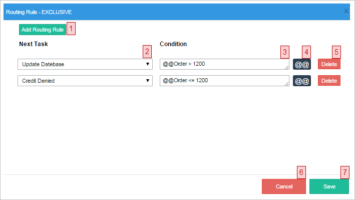 1. Add Routing Rule. Click on this button to add a new routing rule, which is a new path in the workflow.