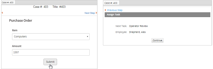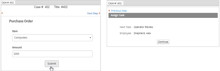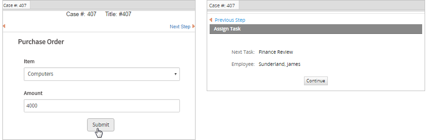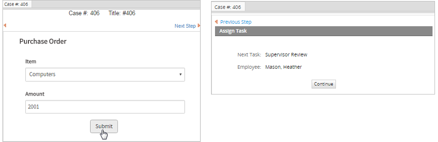 When a case is routed through this Parallel Gateway, the following screen will be displayed to the user.