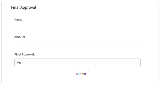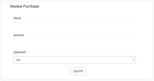 The second will have a dropdown control labeled "Approve?" with the options "Yes" and "No". This is the step for the "Operator Review", "Supervisor Review" and "Finance Review" tasks.
