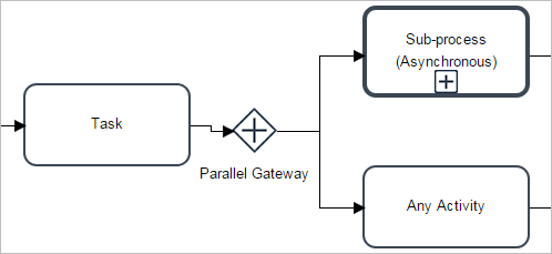 If the design of the process includes a section like the figure above, set the asynchronous process(es) and the rest of the activities in a sequential order instead of using a Parallel Gateway.