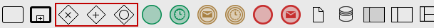 The three gateway shapes are in the shapes toolbox at the upper part of the designer.