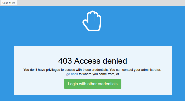 Click the Login with other credentials button to be redirected to the ProcessMaker login page. ProcessMaker will not redirect the user to the input document after logging in with the right permissions, therefore, it is necessary to enter the input document link into the browser address bar again.