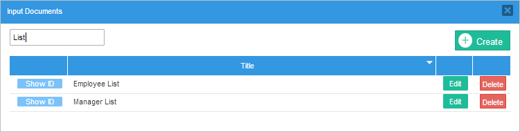 Create: This option opens the input document creation window. It is possible to use this option to create an input document, or this option.