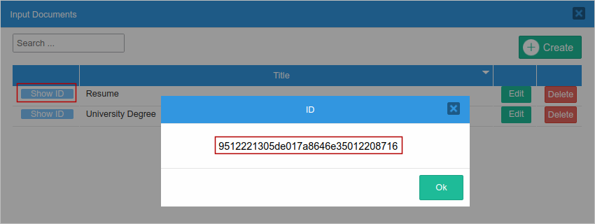 Show ID: Click on this option to obtain the Unique Identification of the input document. For instance, use this ID to create an input document using the PMFAddInputDocument() function.
