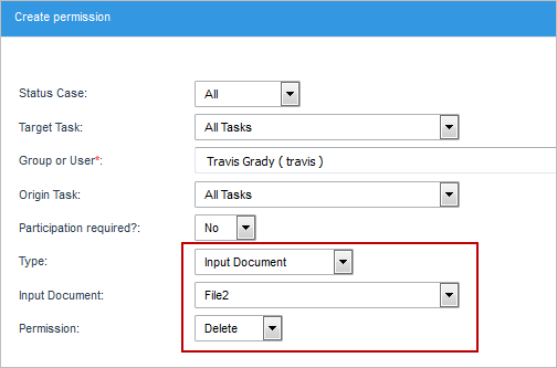 To delete an input document, assign a Delete Process Permission to the user: