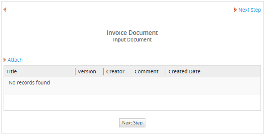 Additional input documents can be added by clicking on the Attach link. All attached input documents will be displayed in the list.