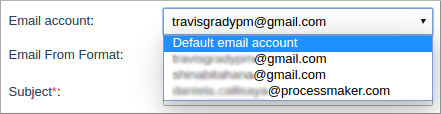 • Email Account Settings: This option sends the email notification using the Sender Email and Sender Name values defined in the email server configuration of the email selected in the Email Account field.