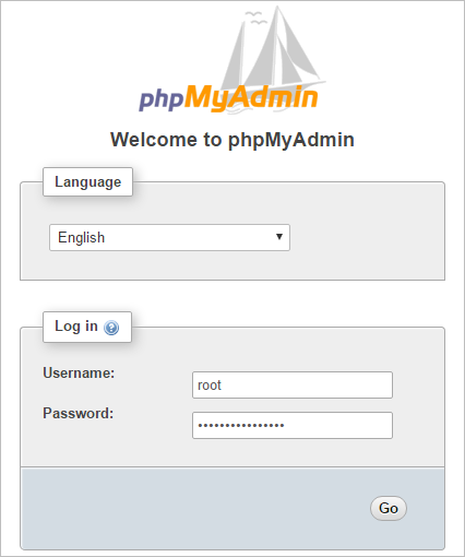 Or by going to the URL http://127.0.0.1/phpmyadmin/. A new tab will open in the default browser that will display the phpMyAdmin login screen.
