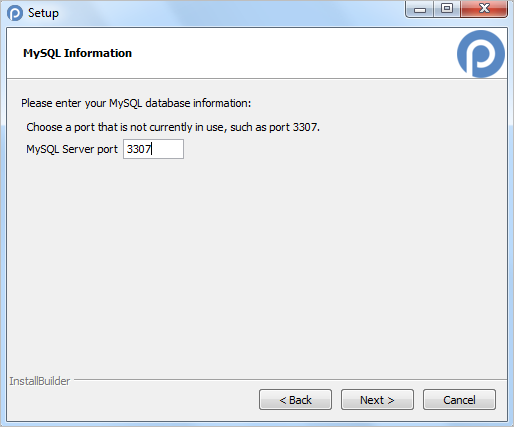 If another instance of MySQL is detected, a different port will need to be specified on the next screen.