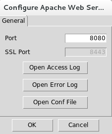 Both services can be configured by selecting the service and clicking on the Configure button inside the Manage Servers tab. Log messages can be review by clicking on the Open [...] Log buttons.