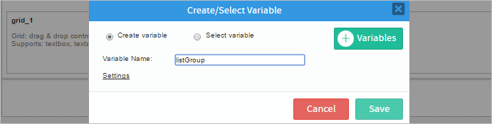 First, create a Dynaform with a grid. When dropping the Grid element, create a new variable named listGroup that is associated to the grid.