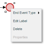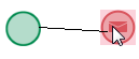 When making an invalid connection, such as between a start event and an end event, the element will become red, indicating that is impossible to connect the two elements.