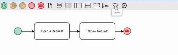 Lasso: Allows the selection of multiple elements in the design to move them as a block using the cursor keys. Note that this control does not work with elements that are inside a pool or lane.
