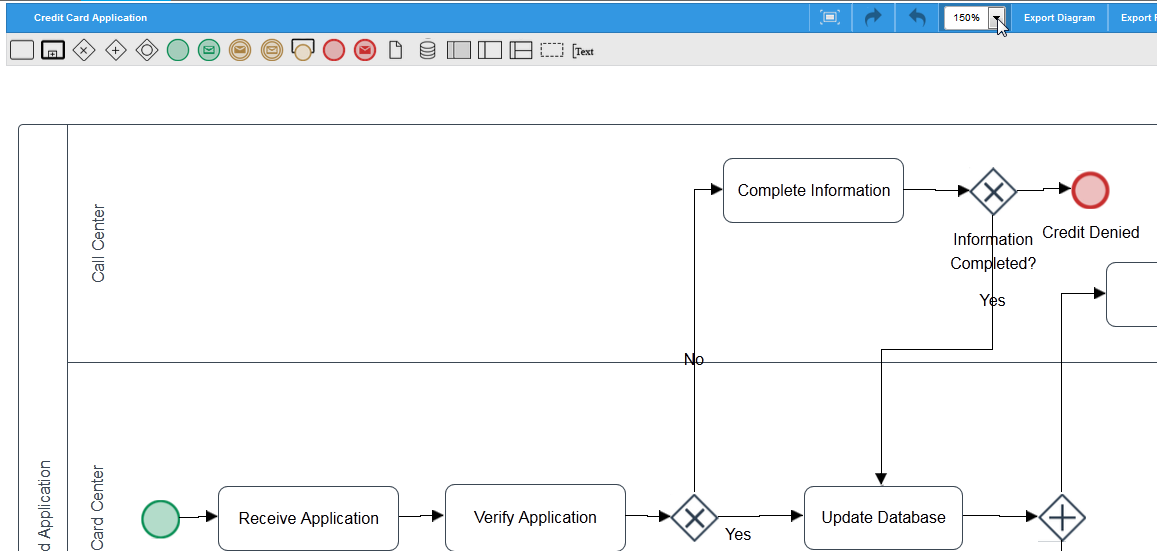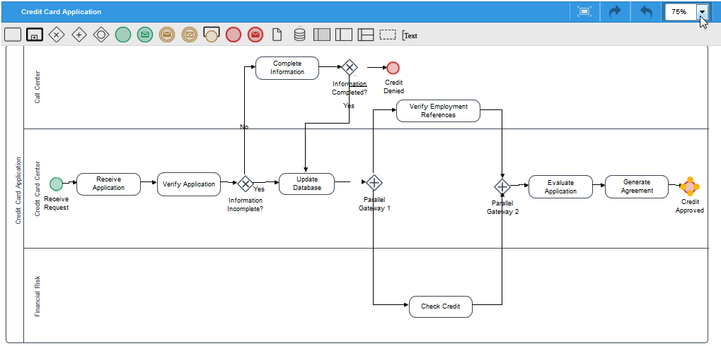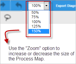 In the top toolbar, the Zoom option allows the user to adjust the size of the text and images on the Process Map. To see how it works, take a look at the next image: