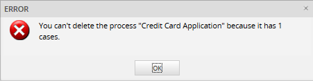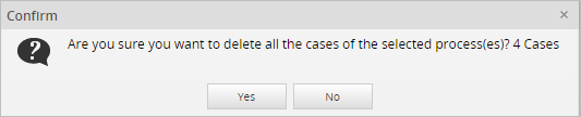 After clicking the Delete Cases option, a message window opens to confirm how many cases of the selected process will be deleted.