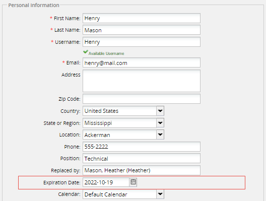 The "Expiration Date" of a user will be calculated by adding this value to the creation date of the user. For example: If this value is set to 6 years, and a new user is created on date 2016-10-19, his/her expiration date will be 2022-10-19.