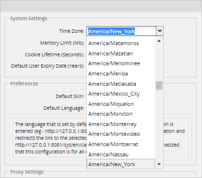 Note: It is recommended to check if the time zone selected in the Time Zone dropdown box is the same one set in the php.ini file. If not, it is strongly recommended to change it to match. See Setting PHP's time zone.