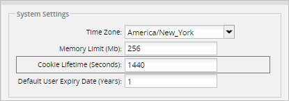 By default, ProcessMaker will automatically logout the user after 1440 seconds (24 minutes) of inactivity. To change this time, set the number of seconds in the Cookie Lifetime (Seconds) field. The minimum value is 0 but is not recommended to set this value. The memory limit has to be a positive integer. Otherwise, the value won't be accepted.