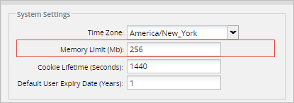 | Warning: As of ProcessMaker 3.5.0, the Memory Limit option is removed. Edit the php.ini file instead. |