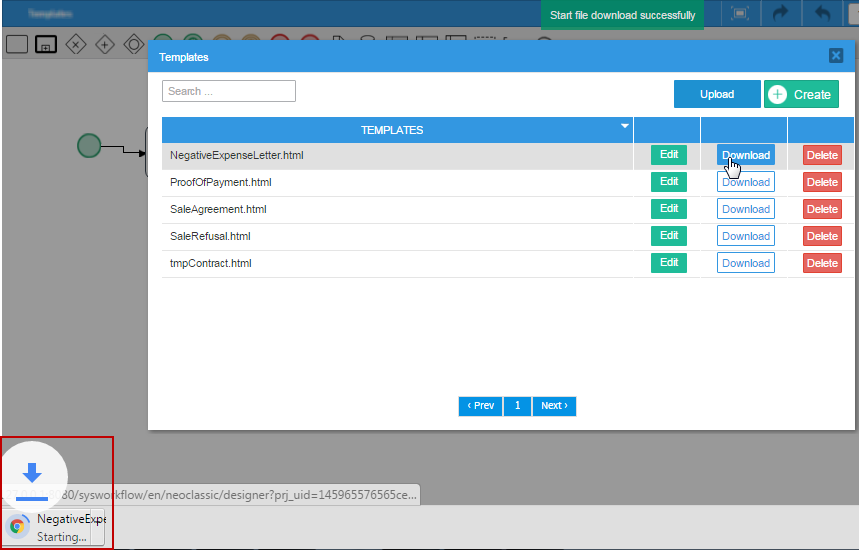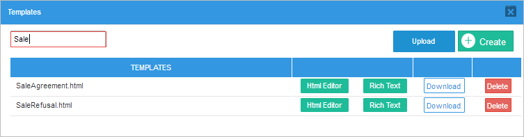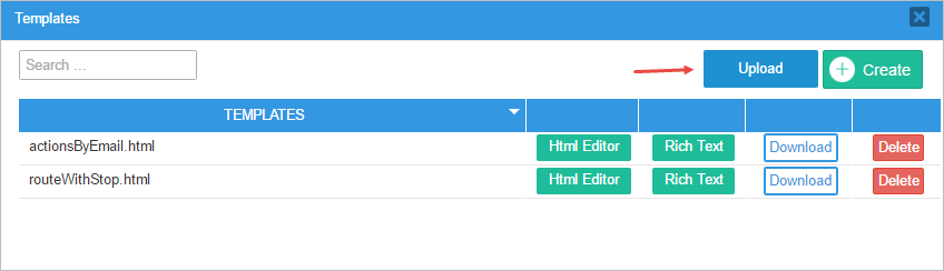 Remember that it is only possible to upload files with the .html extension. The files uploaded will be listed among the other templates created inside ProcessMaker, and it is also possible to modify their content with the editor.