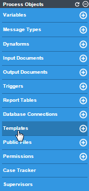 To view the list of templates included in the process, click on the Templates option in the Process Objects toolbox.