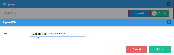 2. Upload: Click on this button to upload a file from your computer to the current ProcessMaker server. This option is useful if the template was created in an external HTML editor, such as DreamWeaver or BlueGriffon.