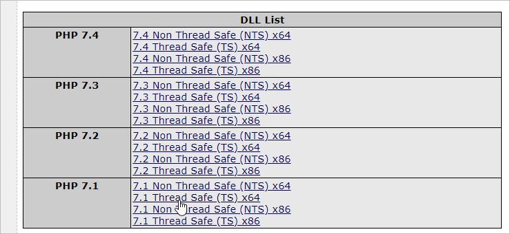 Choose the link according to the PHP version on your server and click to download the DLL file.