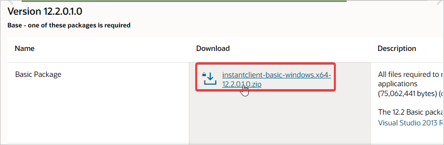 Go to the Oracle Instant Client Downloads page.