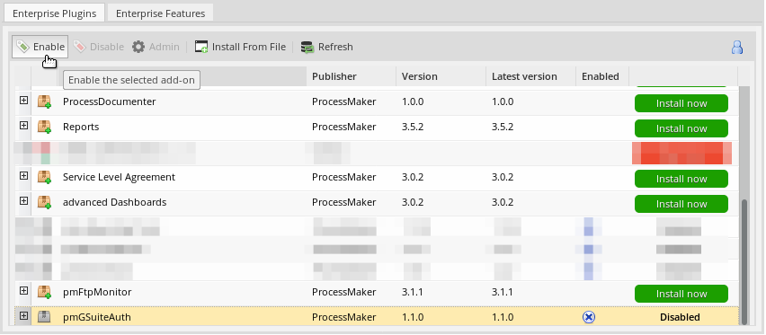 . If the plugin is not enabled, click the Enable button, as shown in the graphic below.
