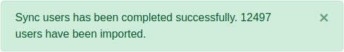 Click Sync Now. The Sync users has been completed successfully message displays at the top of the screen. The message displays how many users have been imported.