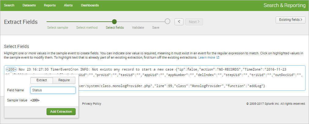 For more options and ways to extract new fields, please read the Splunk documentation.