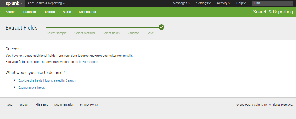A success message will be displayed. Click on Explore the fields I just created in Search option to begin using the new extracted fields.