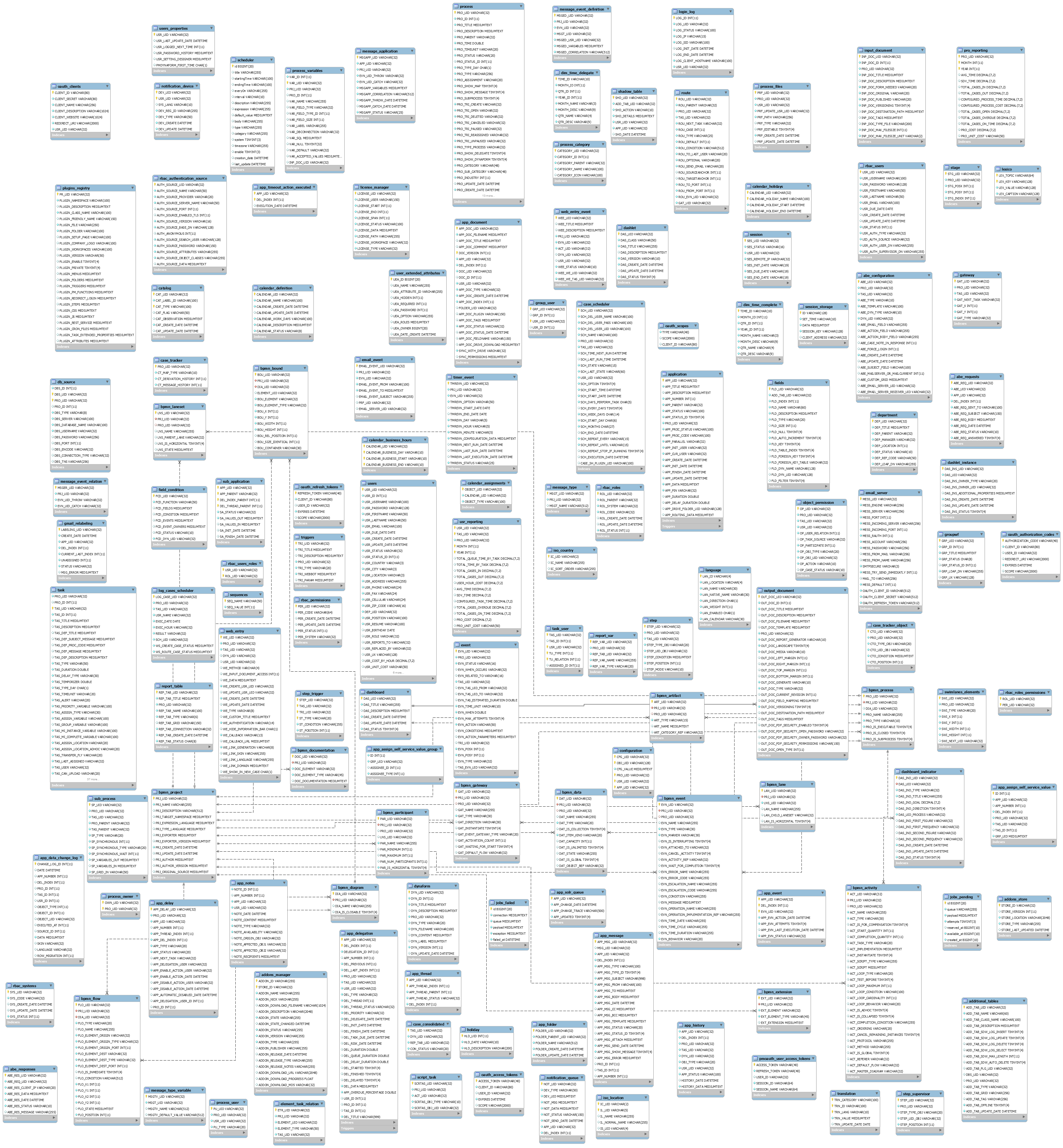 This database contains all the information required by the Process Engine, including information about processes, cases, users, PM Tables, etc.