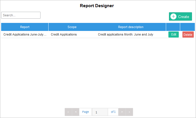 Click on this new option and a list of the reports designer by the current report designer will display. To create a new report design, click the Create button.