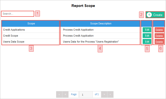 2. Report Scope Creation: A report scope sets the data that can be accessed by the report designer. At the same time, the report designer is able to create multiple instances of a report using a single report scope. In this way, each report can share the same scope while containing data unique to its case. For instance, a report can summarize all sales made or create a summary of all clients within a specific month. To create a report scope, the user must have the REPORT_ADMINISTRATOR permission.