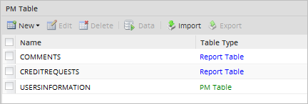 Report tables and PM tables allow data to be easily accessed. As it was mentioned before, the data contained in a report is selected from report/PM tables. First, create the tables that will contain the data that will be represented in the final report.