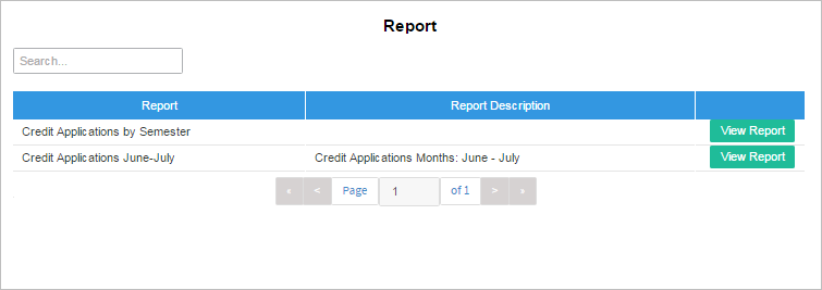 To open a report, click the View Report button next to the name of the report. Note that each report type will display the report results differently and users should consider how they would like to view the data prior to creating the report.