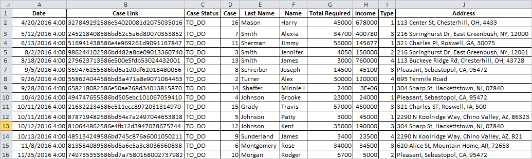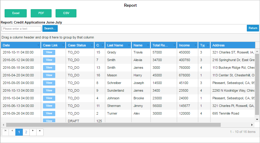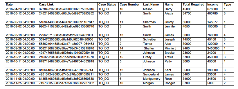 • Case Link: The field APP_UID contains the case's unique ID number and the option to create a link to that case. When pressed, the Dynaform selected in the Dynaform to show a case summary option in the process configuration will display. If no Dynaform was set in that option, the case summary of that specific case will display. Note that this option is only available if the table selected in the Tables section is a Report Table.