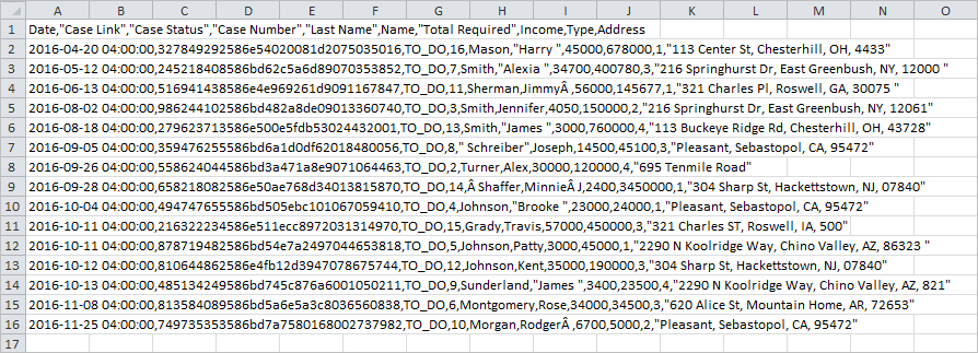 • CSV: Generates a comma-separated value (CSV) file. This file is a flattened representation of the data that opens in a viewing tool associated with .CSV file formats.