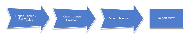 1. Report Tables / PM Tables: The workflow begins with the creation of report tables and PM tables by the process designer (the user with the PM_FACTORY permission assigned). Remember that a report scope can access the data stored in all the report tables and PM tables in all processes in the current workspace.
