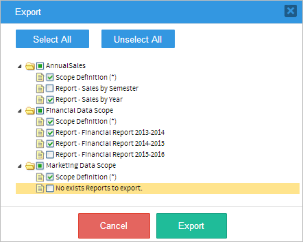 • Report Scope: ​A subset of the data stored in all the report tables chosen by the report administrator.