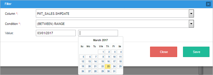 A calendar will display if the data in the selected column has the date or datetime type.