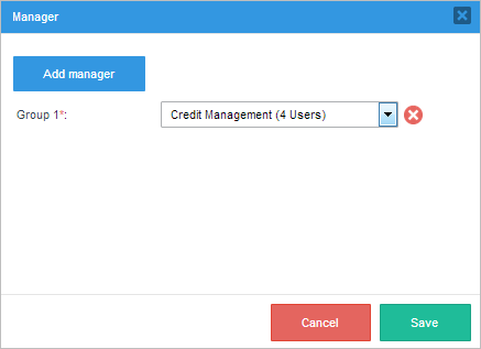 • Add manager: Click this option to add a group of users. More than one group can be added.