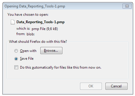 The .pmp file will be downloaded automatically depending on the browser's configuration.