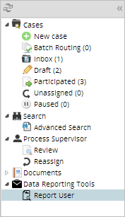 • REPORT_MANAGER: This permission provides access to the Report User option under the Data Reporting Tools menu in the Home tab. In this case, this option allows you to access final reports of the user cases and the cases of the groups members assigned as a manager in the Report Designing process.