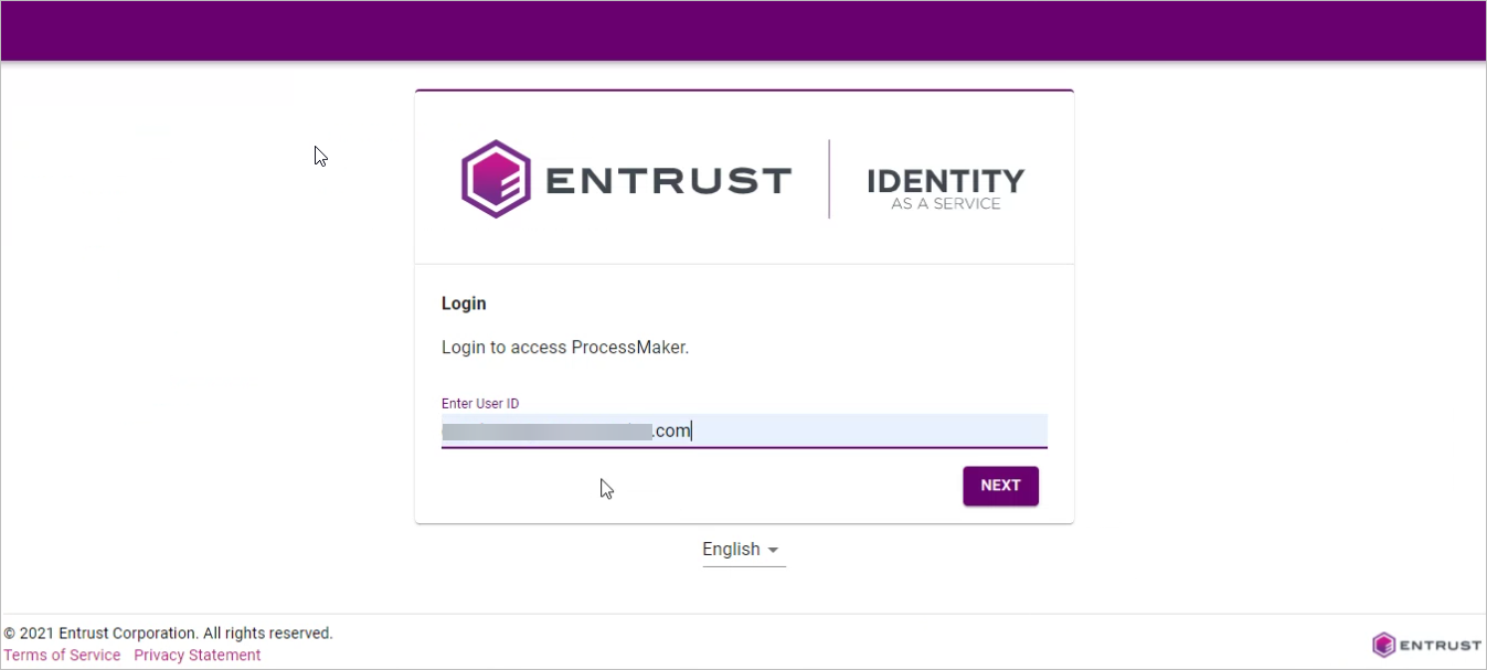 This redirects you to your Entrust domain, then enter your Entrust credentials. You are now logged on to ProcessMaker via Entrust.