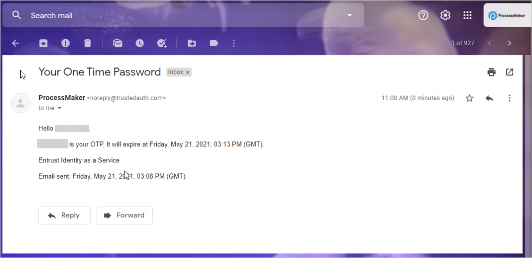 8. A message and an email with the OTP code are sent to your account.