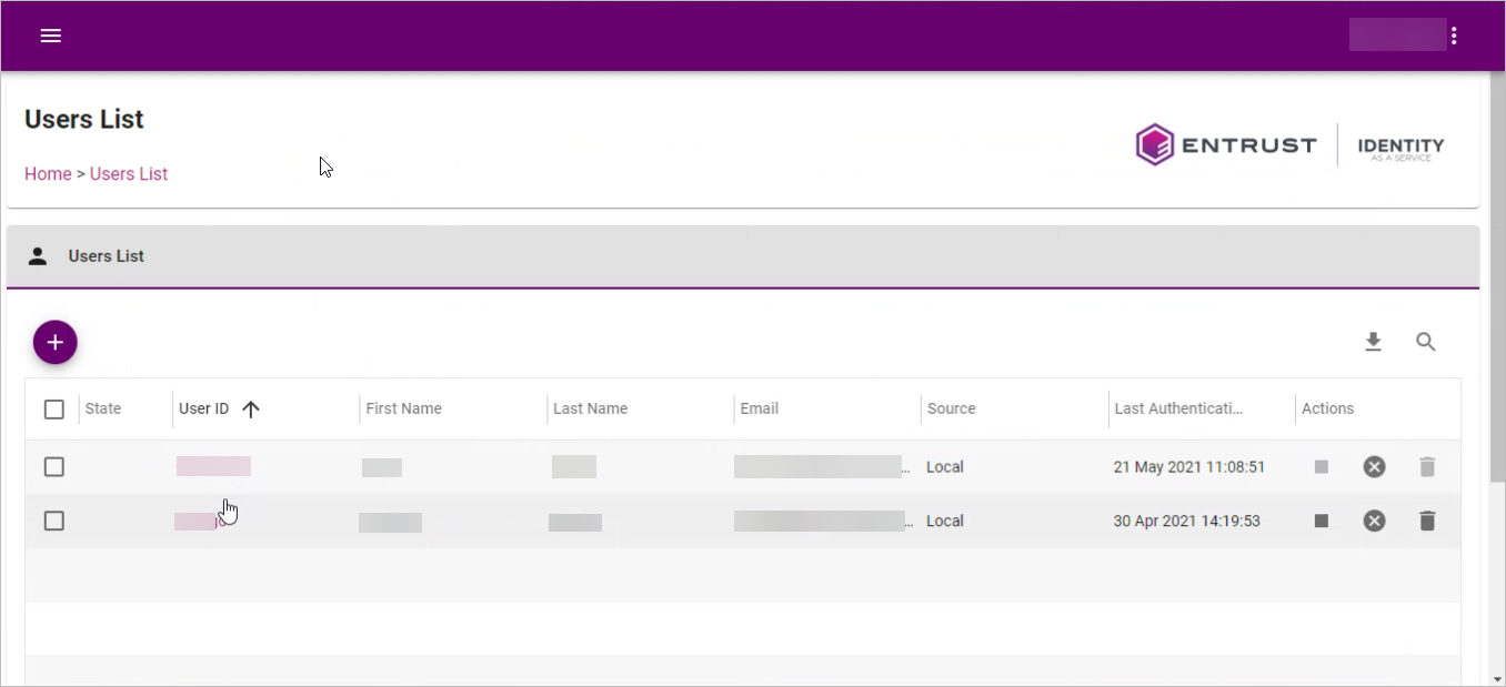 10. Click a row in the list to see the details or edit the user configuration.