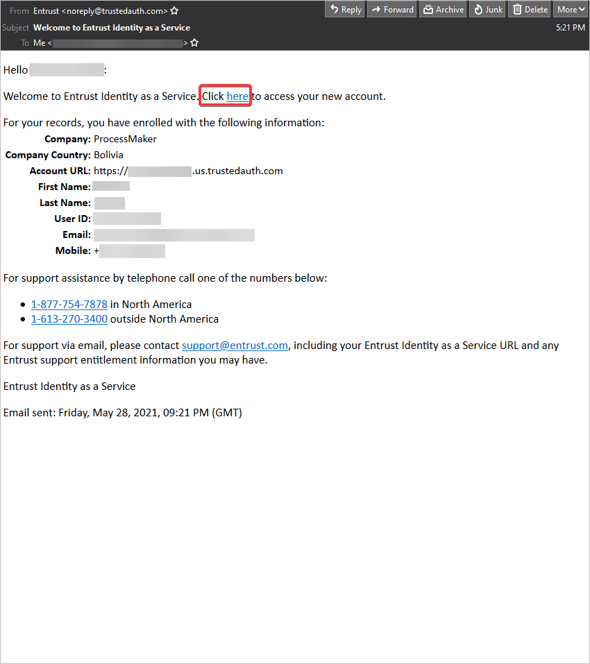 5. An email is sent to the set account. Click on the link provided to access the new user.