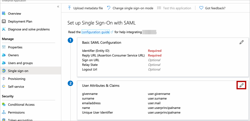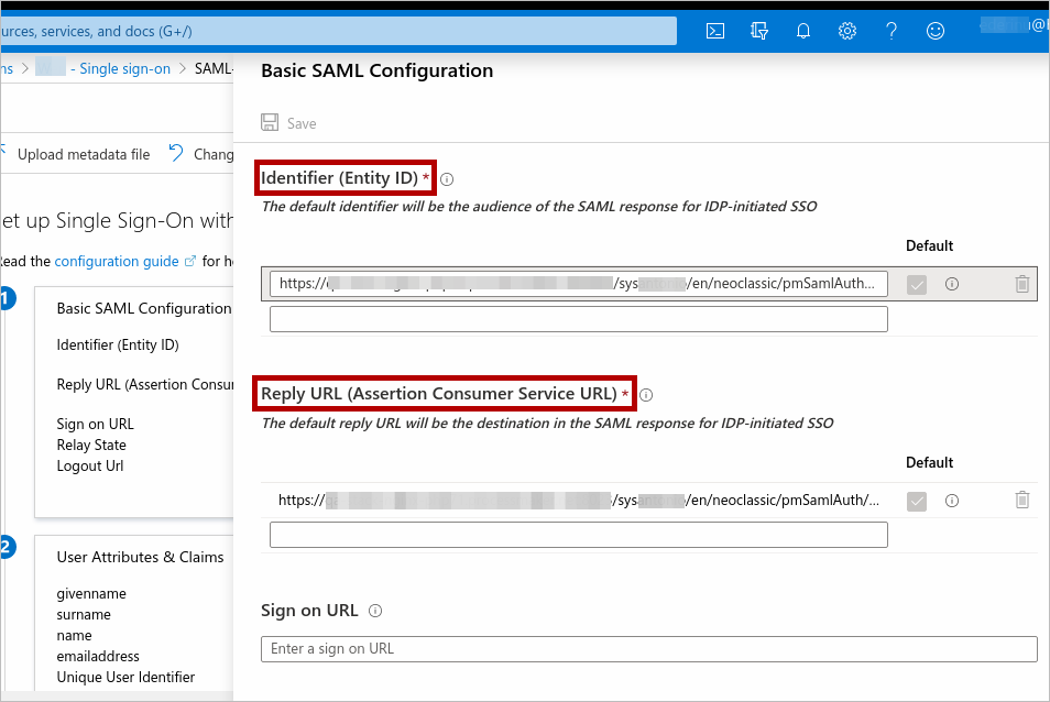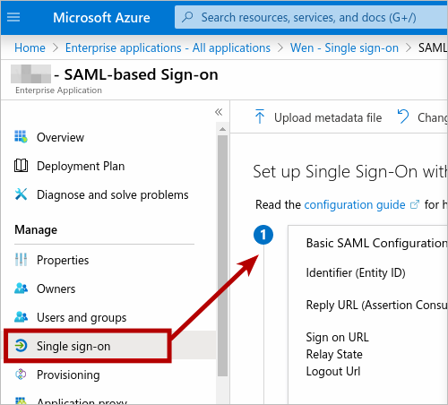 On the sidebar, click Single sign-on and then the Basic SAML Configuration step displays.